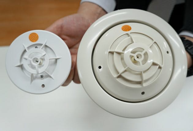 火災警報器大手のホーチキは火災報知設備を約17年ぶりに刷新する。ピュアホワイトで意匠性を重視し、分煙が進むオフィスビル内で使いやすい小型仕様にした。首都圏を中心に建設ラッシュが続いており、喫煙者が減りつつある社会情勢に対応した。天井で目立たないよう直径や厚みを4割ほど小さくした。大規模な商業施設やオフィスビル、マンション向けなどに売り込む。