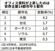オフィス賃料上昇率、大阪の世界トップ続く - 日本経済新聞