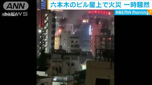 26日夜、東京・六本木のビルの屋上から火が出て辺りは一時騒然となりました。