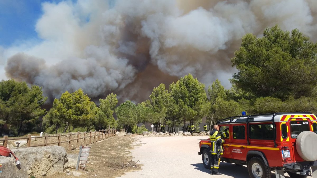 1 300 soldats du feu sont sur place, dont 14 colonnes de renforts extra départementaux et 300 engins. Ils sont appuyés par des moyens aériens de la sécurité civile (11 aéronefs, Canadairs, DASH, PUMA, avion de coordination, ainsi que deux hélicoptères du SDIS13)